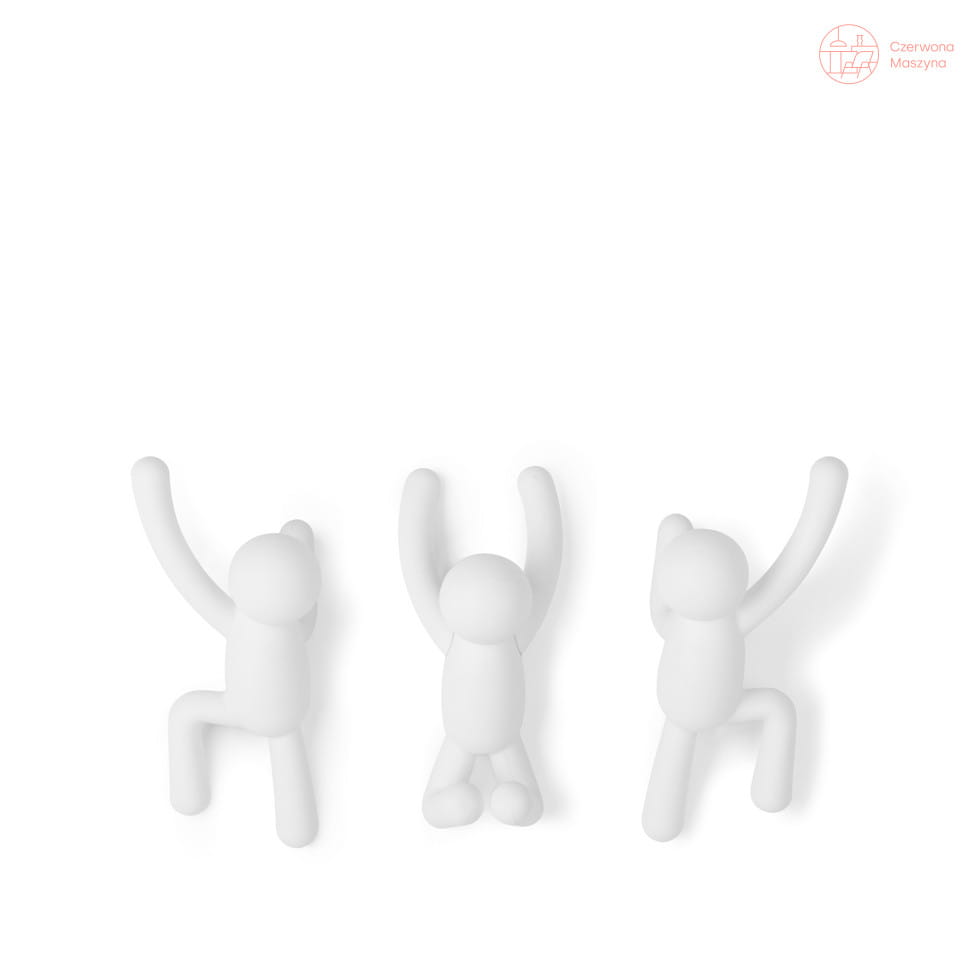 Komplet 3 oryginalnych wieszaków Umbra Buddy w kształcie ludzików, które zdają się wspinać po domowej ścianie. Każdy wieszak udźwignie do 2,3 kg (torebkę, kurtkę, koszulę, apaszki, lekkie wiatrówki itp.). Stylowe.