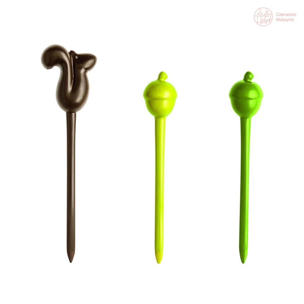 Każdy widelczyk wykończono kształtem orzeszka, a jeden – najpewniej należący do solenizanta lub Pani Domu jest… wiewiórką. Całość kapitalnie wygląda przyniesiona na stół np. na talerzyki z przekąskami.