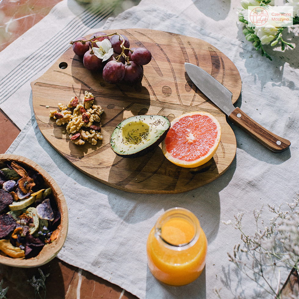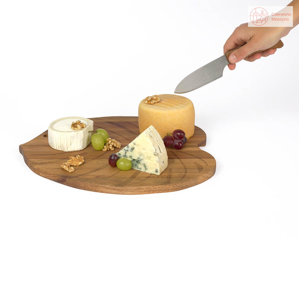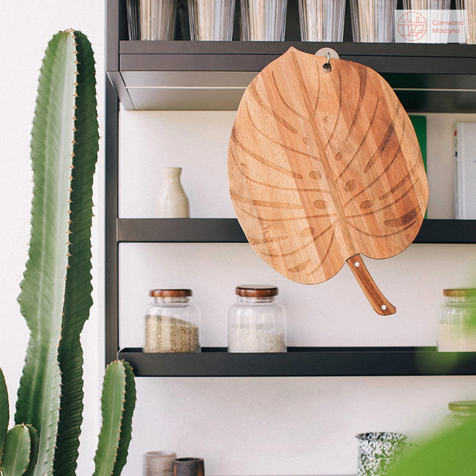 Deska do krojenia i serwowania w kształcie monstery. Została wykonana z grawerowanego drewna akcjowego. W swoim trzonie ukrywa namagnesowany nóż. Możesz ją łatwo powiesić, dzięki czemu będziesz mieć ją zawsze pod ręką. Kształt liścia monstery rozweseli Twoją kuchnię.