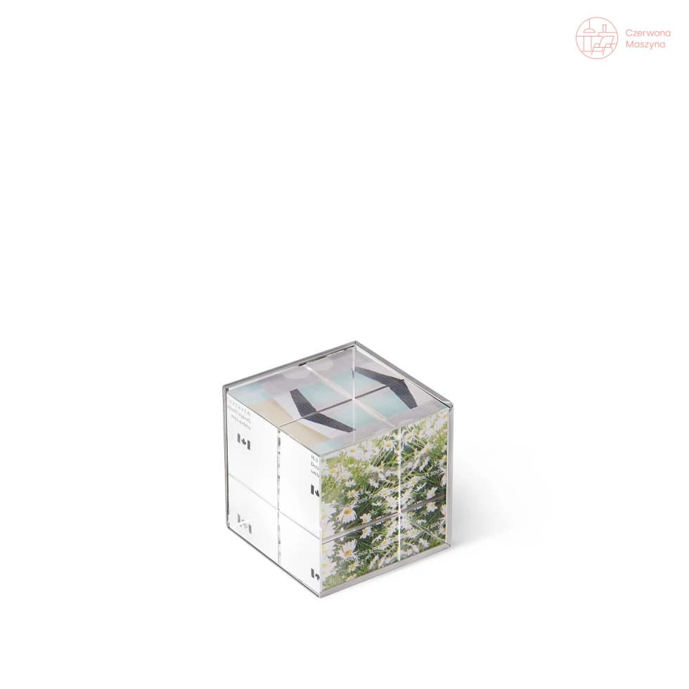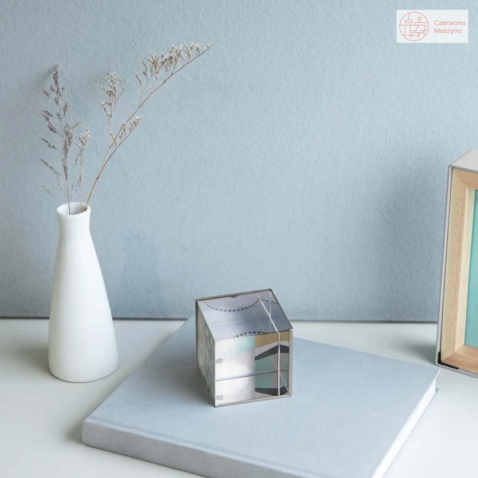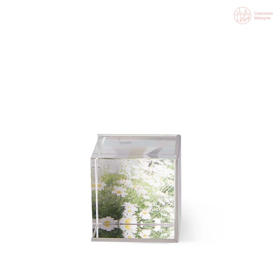 Produkt ma formę szklanego sześcianu z miejcem na ekspozycję 3 zdjęć o wymiarach 6,3 cm x 6,3 cm. Ta przyciągająca wzrok rama wykonana jest z litego, kryształowego szkła, a jej duża ciężkość zapewnia luksusowy i wysokiej jakości wygląd.