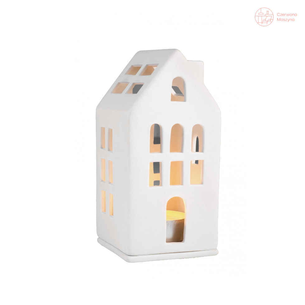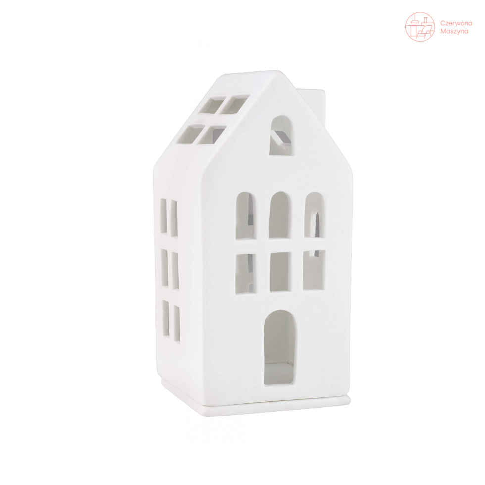 Ten urokliwy dodatek do wnętrza w kształcie domku został z wysokiej jakości, białej porcelany. Brak szkliwienia sprawia, że lampion prezentuje się naturalnie i z łatwością dopasuje się do różnych stylów.
