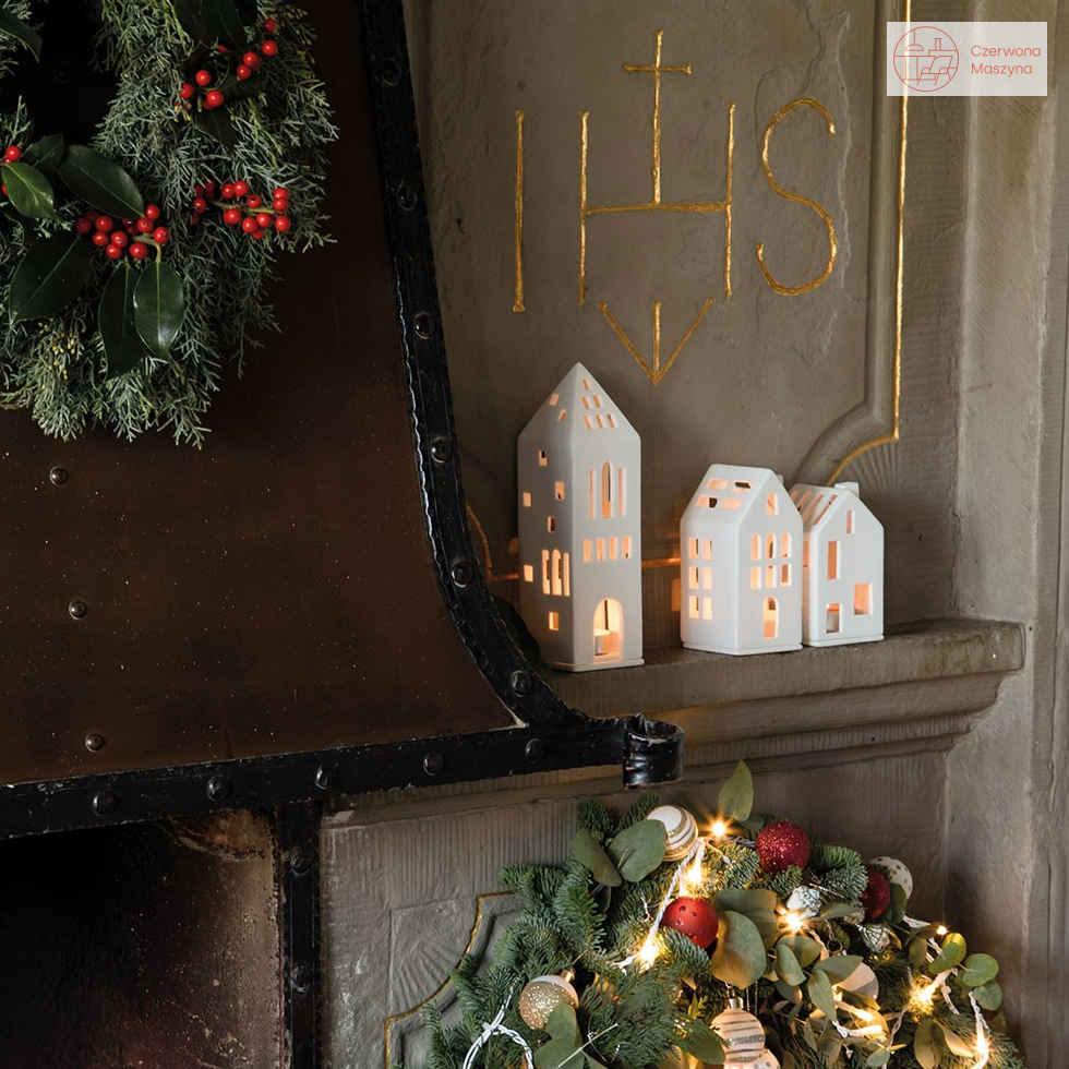 Do środka domku o wysokości 13 cm wystarczy włożyć świeczkę na przykład typu tealight, aby cieszyć się ciepłym światłem rzucającym ciekawe cienie wokół.