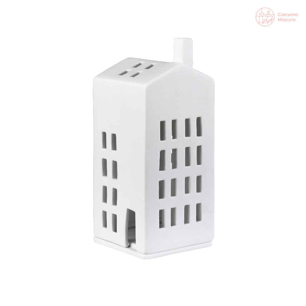 Porcelana została wykończona na matowo, a całą powierzchnię lampionu pokryto perforacją w formie okienek.