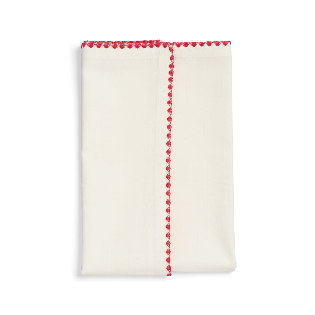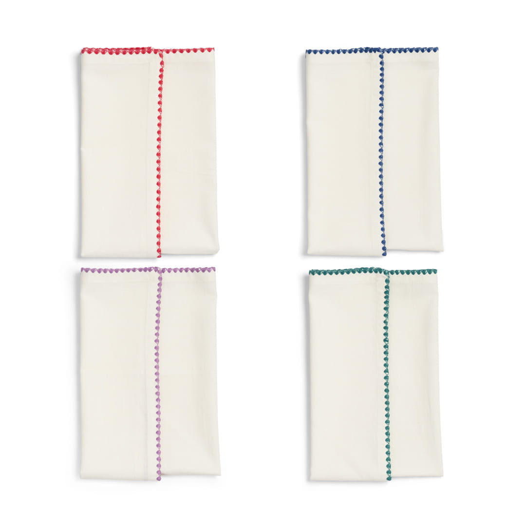 Bawełniane serwetki z haftem zigzag &k Amsterdam (6044-01) to stylowy zestaw czterech serwetek, który wnosi wyjątkowy urok do aranżacji stołu. Wykonane w 100% z wysokiej jakości bawełny, serwetki o wymiarach 45 x 45 cm ozdobione są kolorowymi, haftowanymi wzorami w kształcie zigzaga, co nadaje im unikalny i radosny charakter. Są idealnym dodatkiem do codziennych posiłków, jak i specjalnych okazji, dodając każdemu nakryciu stołowemu wyrazistego akcentu.