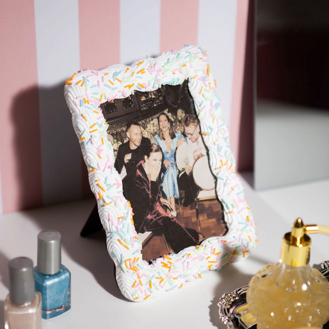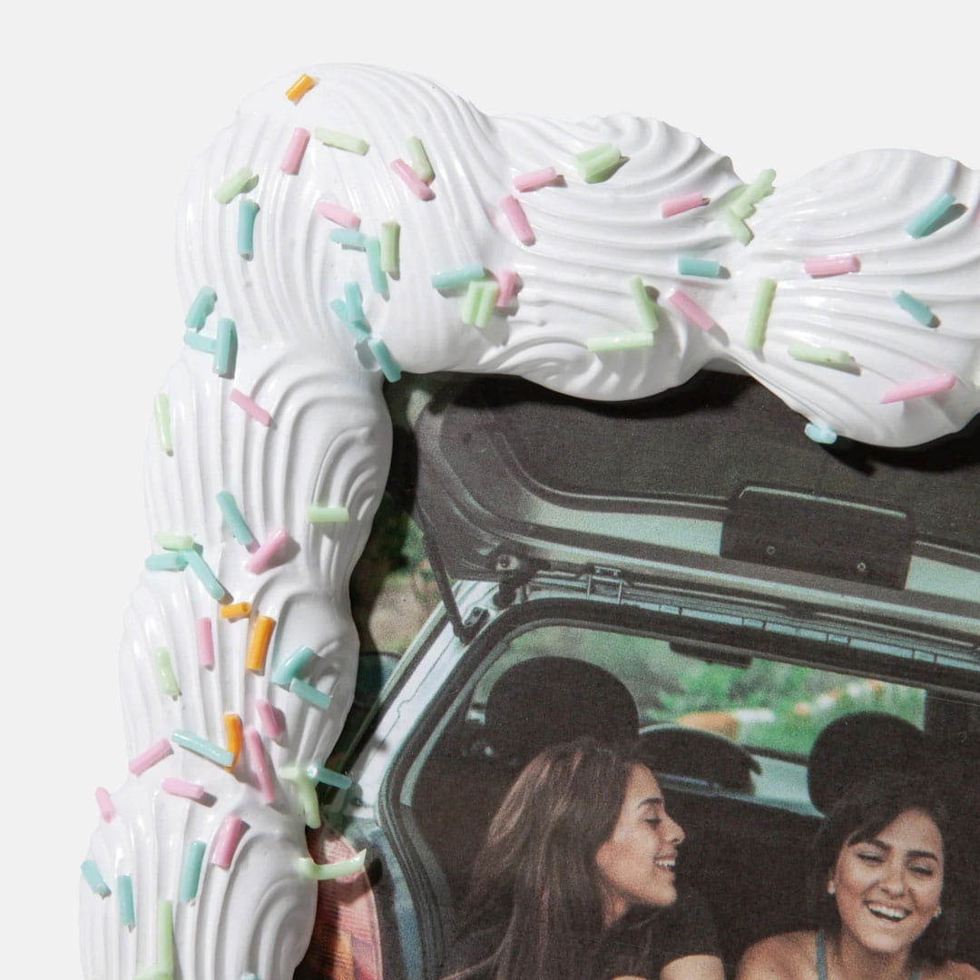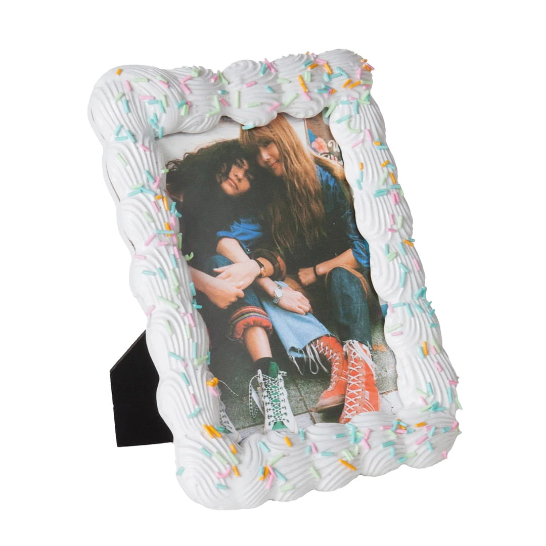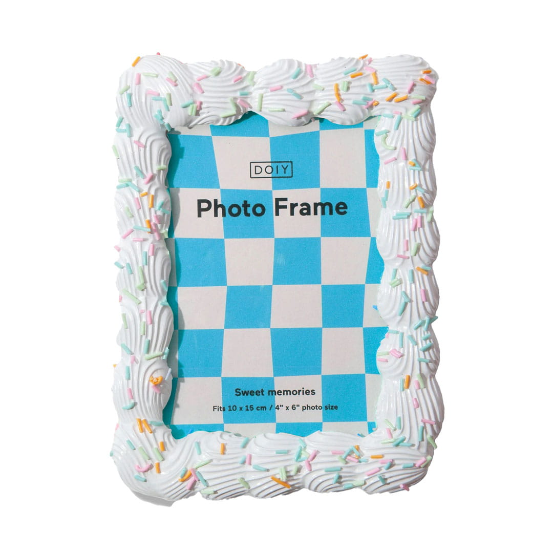 Ramka na zdjęcia (DYPHFSWWH) marki Doiy to wyjątkowy dodatek, który wnosi odrobinę słodyczy i elegancji do każdego wnętrza. Wykonana z żywicy, ramka wyróżnia się dekoracyjnym wzorem, przypominającym kremowe wykończenie tortu, oraz subtelnymi pastelowymi akcentami. Produkt z kolekcji Sweetie został stworzony z myślą o estetyce i funkcjonalności, oferując doskonały sposób na eksponowanie najcenniejszych wspomnień.