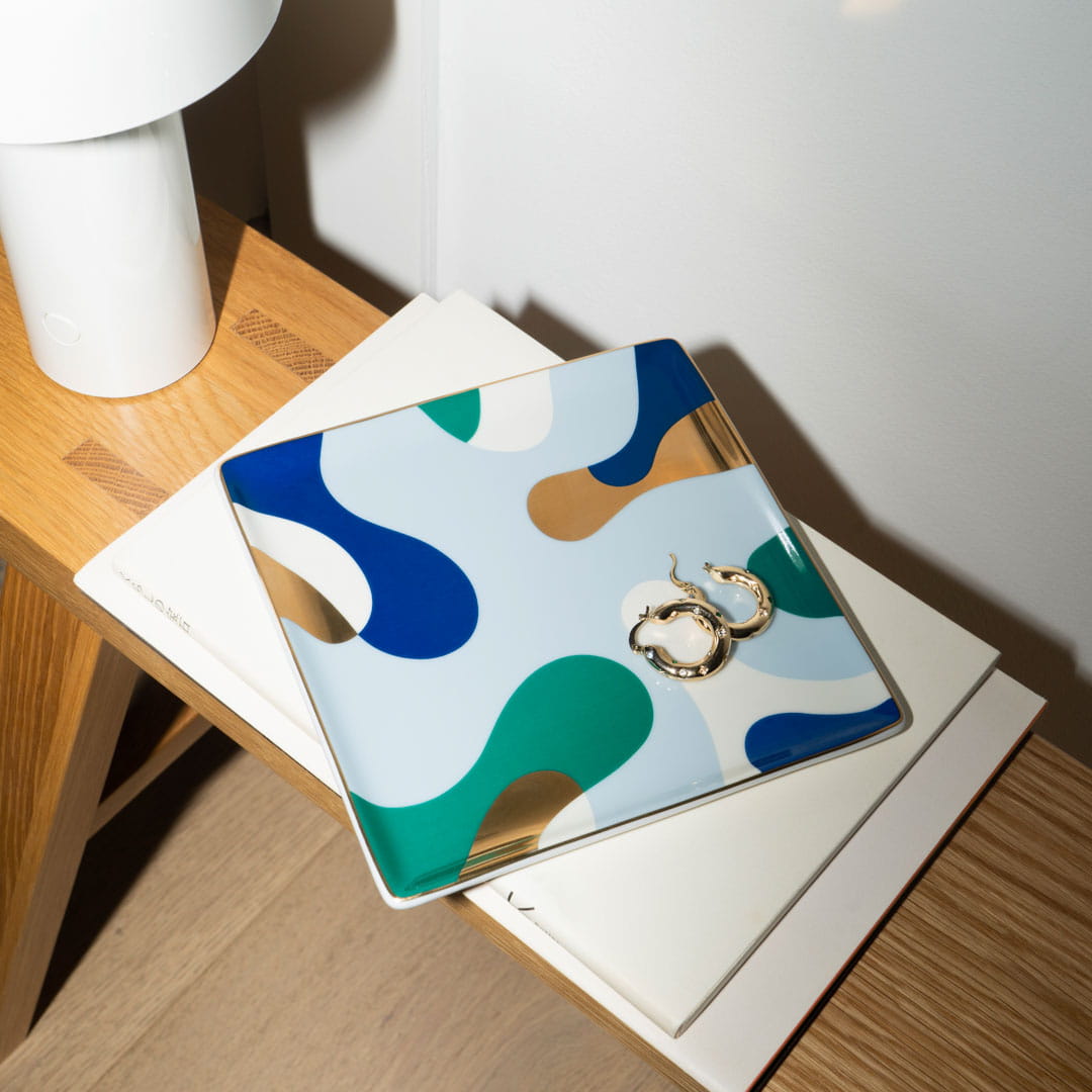 Choć nie jest przeznaczona do kontaktu z żywnością, tacka idealnie sprawdzi się jako podstawka na biżuterię, klucze czy drobne akcesoria. Zapakowana w eleganckie pudełko z tłoczeniem na złoto, świetnie nadaje się na prezent dla miłośniczek designu i artystycznych dodatków.