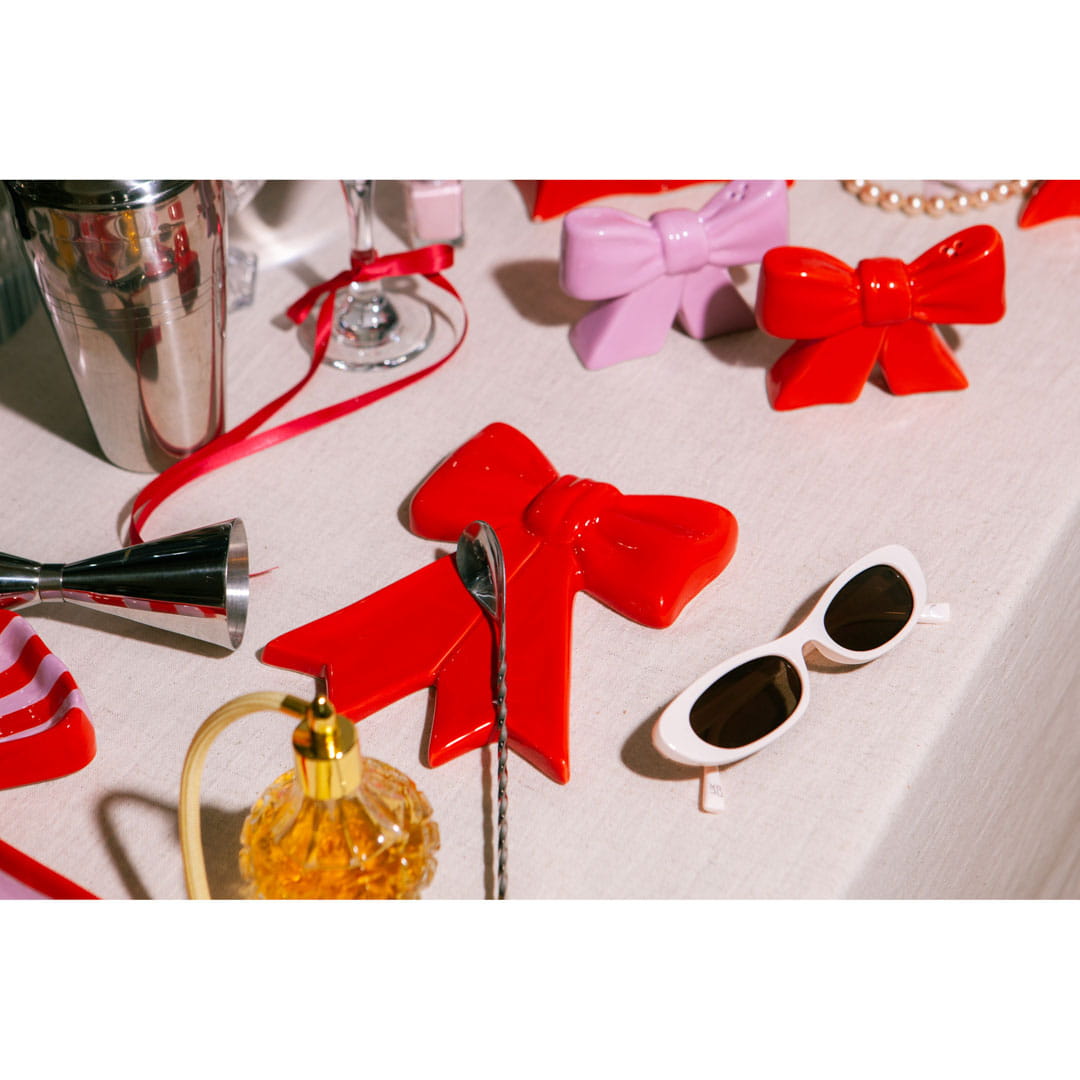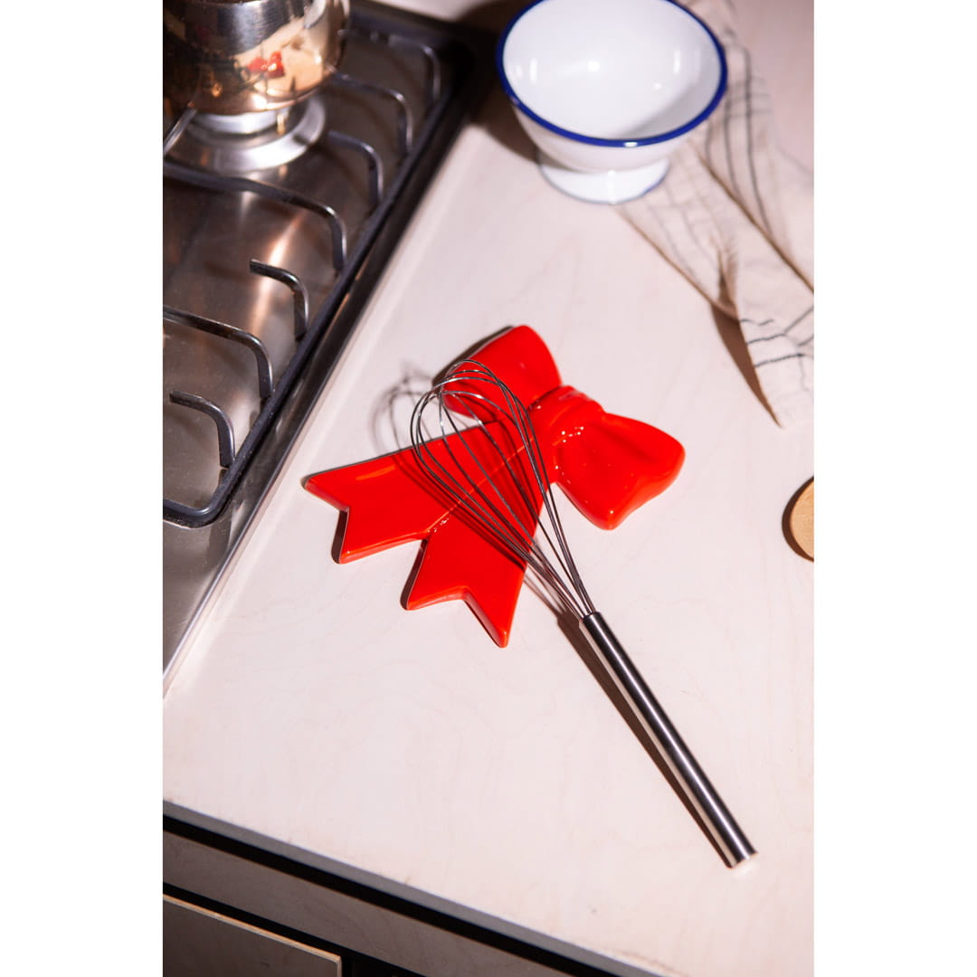 Ceramiczna podstawka na łyżkę DOIY Bow w kształcie kokardy, czerwona