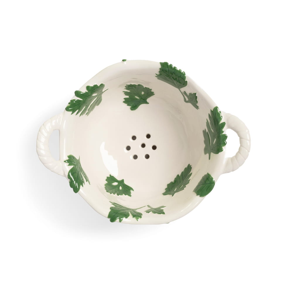 Durszlak &k amsterdam Parsley jest nie tylko bardzo praktyczny, ale również prezentuje się wyjątkowo estetycznie. Wykonany został z białej porcelany i dodatkowo ozdobiony nieco wypukłym wzorem przedstawiającym liście pietruszki. Przywodzi na myśl dawne naczynia kuchenne używane przez nasze babcie, z pewnością więc docenisz go, jeśli lubisz estetykę w stylu vintage.