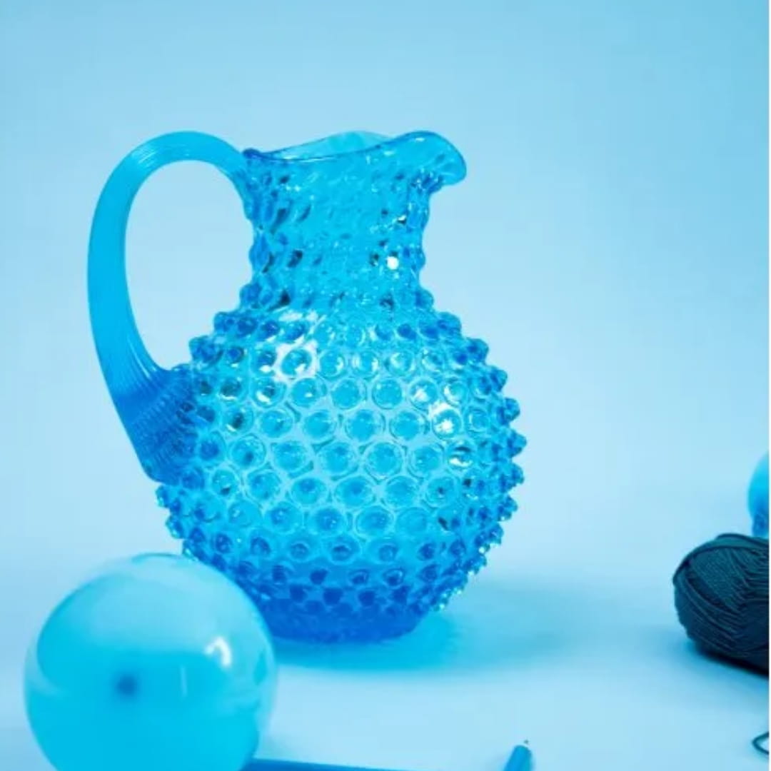 Dzbanek Klimchi Hobnail 2 l azure łączy klasyczną formę oraz interesującą, niecodzienną fakturę. Doskonale sprawdzi się do podawania wody oraz chłodnych napojów takich jak soki, lemoniada czy mrożona herbata. Będzie prawdziwą ozdobą stołu na co dzień i od święta, zarówno w jadalni, jak i podczas przyjęć na świeżym powietrzu.