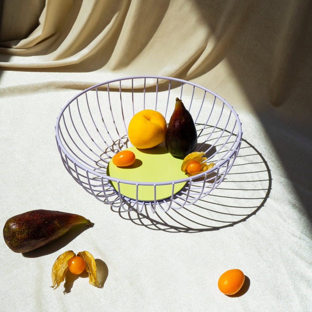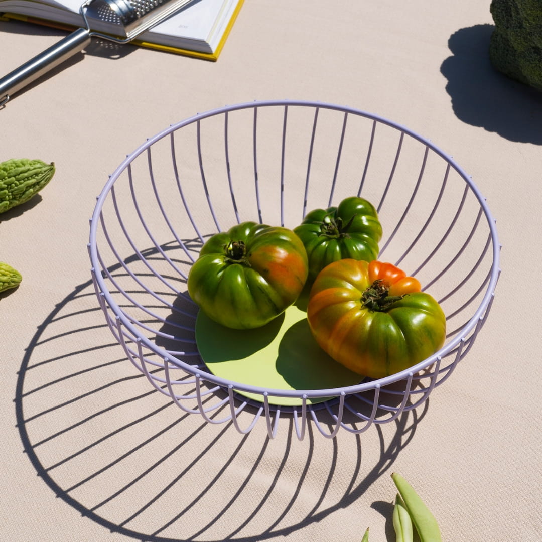 Koszyk Octaevo Iris Large fioletowy jest minimalistyczną konstrukcją w intrygującym, fioletowym kolorze. Obok tego produktu nie możesz przejść obojętnie! Posiada drucianą konstrukcję, układającą się w geometryczny okrąg. Świetnie zaprezentuje się na stole jadalnym lub kuchennym blacie.