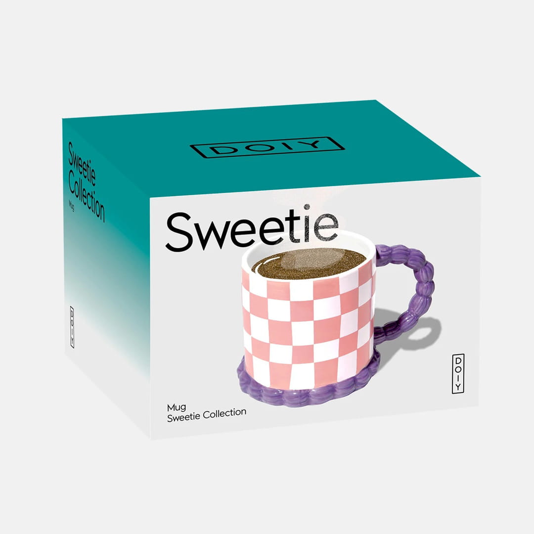 Kubek ceramiczny Doiy Sweetie w różową kratę