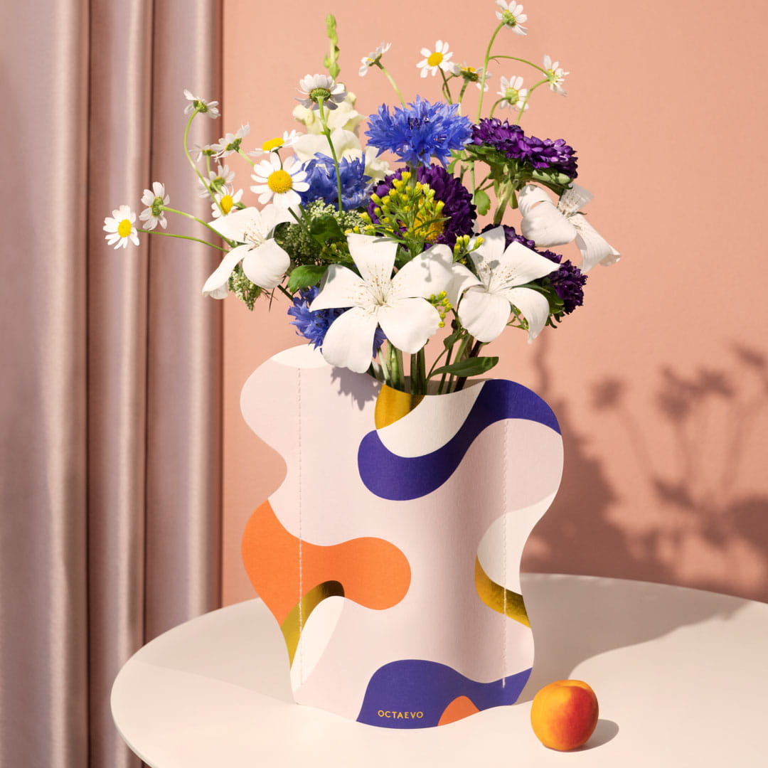 Mini papierowy wazon Octaevo Gaia w pastelowych kolorach z organicznym wzorem