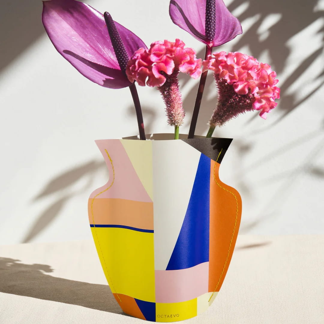 Papierowy wazon Octaevo Bazaar został wykonany z wodoodpornego papieru. Jego Wysoka gramatura oraz odporność na uszkodzenia sprawiają, że stanowi wspaniałe rozwiązanie na długie lata.