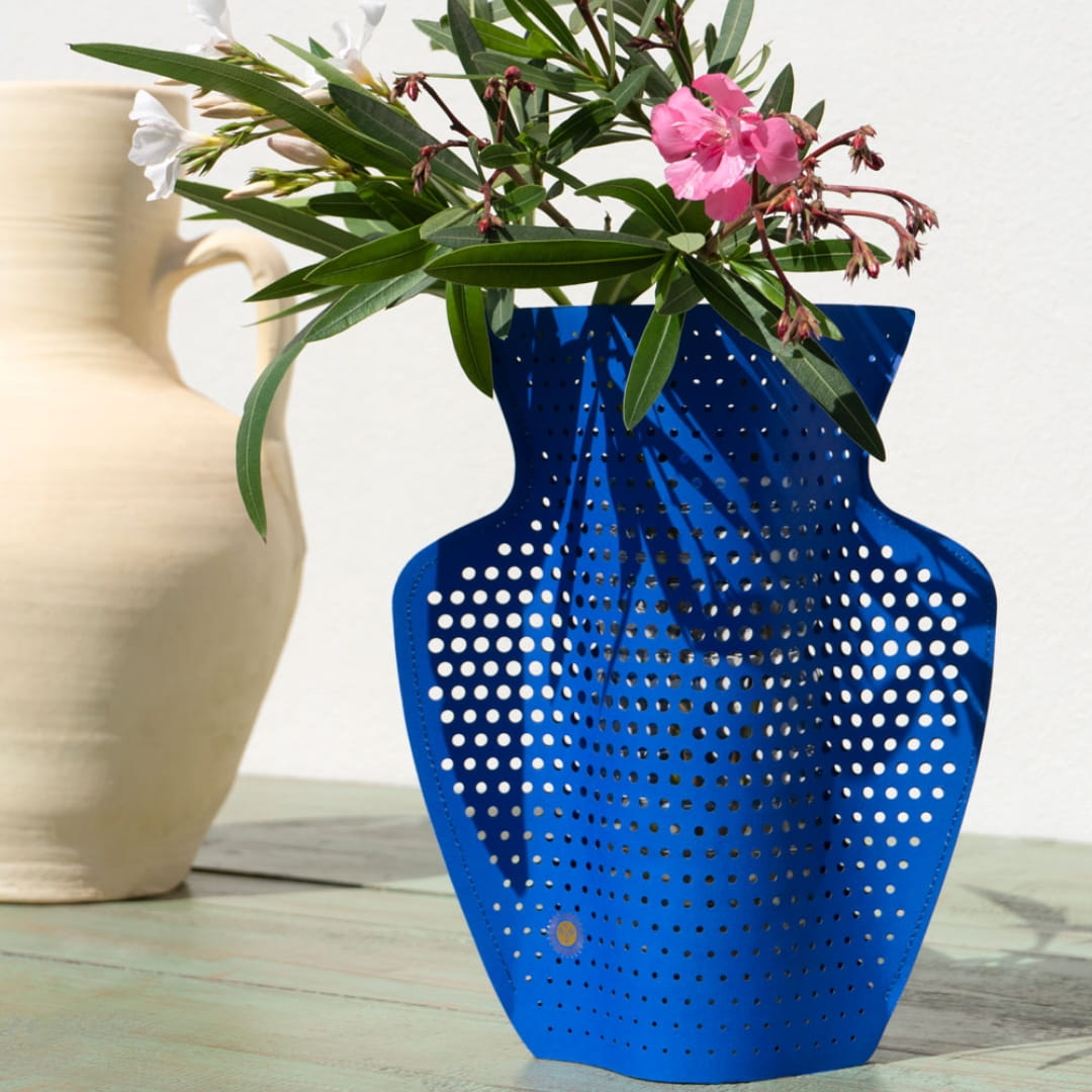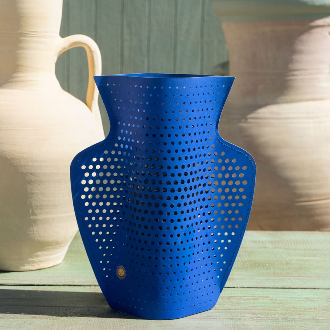 Papierowy wazon Octaevo Helio niebieski to niepowtarzalna dekoracja, która może zagościć również i w Twoim wnętrzu! Wazon posiada oryginalną formę oraz intensywny odcień koloru niebieskiego. Prezentuje się nowocześnie i elegancko.
