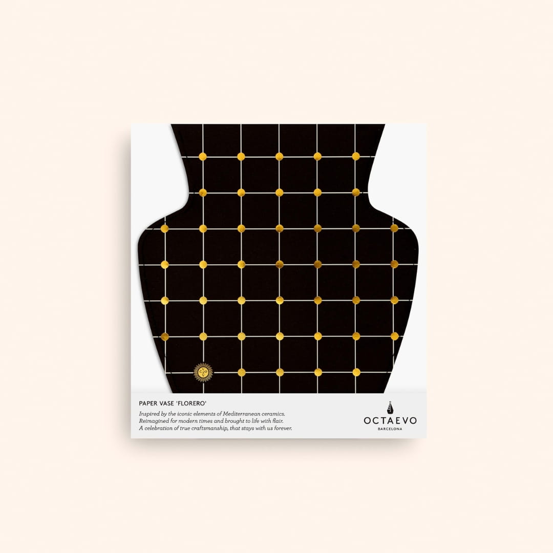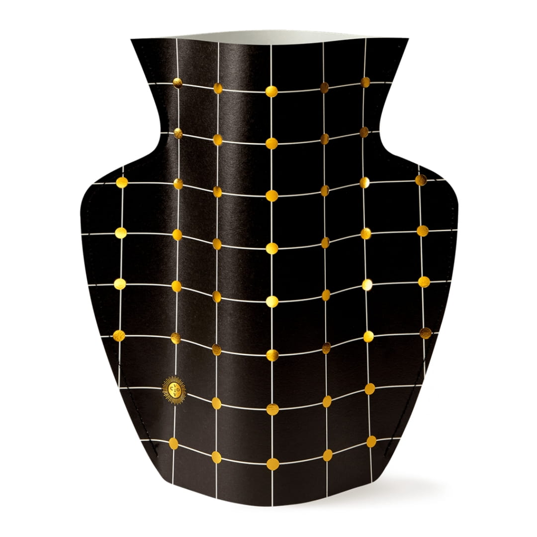 Papierowy wazon Octaevo Lido czarny to dekoracja o niebanalnym wzorze, łącząca klasyczną czerń z eleganckim złotem. Całość prezentuje się nietuzinkowo, przez co przykuwa uwagę. Wazon stanie się elementem dekoracyjnym Twojej przestrzeni. Możesz w nim umieścić rośliny lub kwiaty – wybór pozostawiamy Tobie.