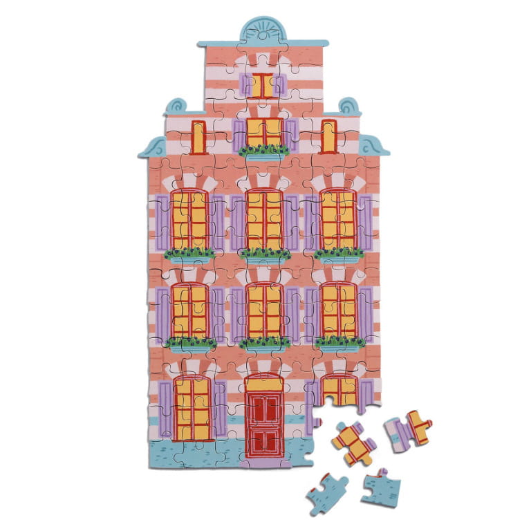 Puzzle &k amsterdam Canal House stairs przedstawiają kolorową kamienicę. Układanka zawiera 82 elementy. Z ułożeniem obrazka poradzą sobie dzieci w wieku od 5-6 lat, spodobają się również starszym amatorom układanek. Układanie puzzli pomaga ćwiczyć koncentrację i cierpliwość, poprawiają pamięć wzrokową. To świetna rozrywka dla całej rodziny!