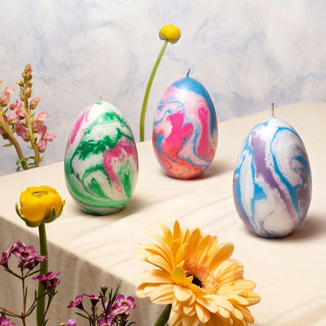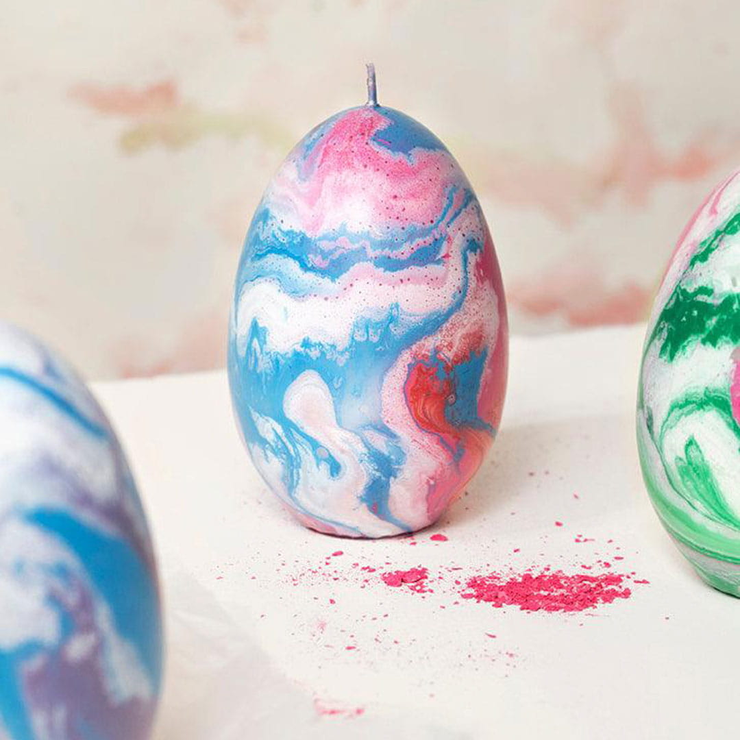Świeca dekoracyjna jajko Octaevo Olimpo niebiesko-czerwona z efektem marmurkowym