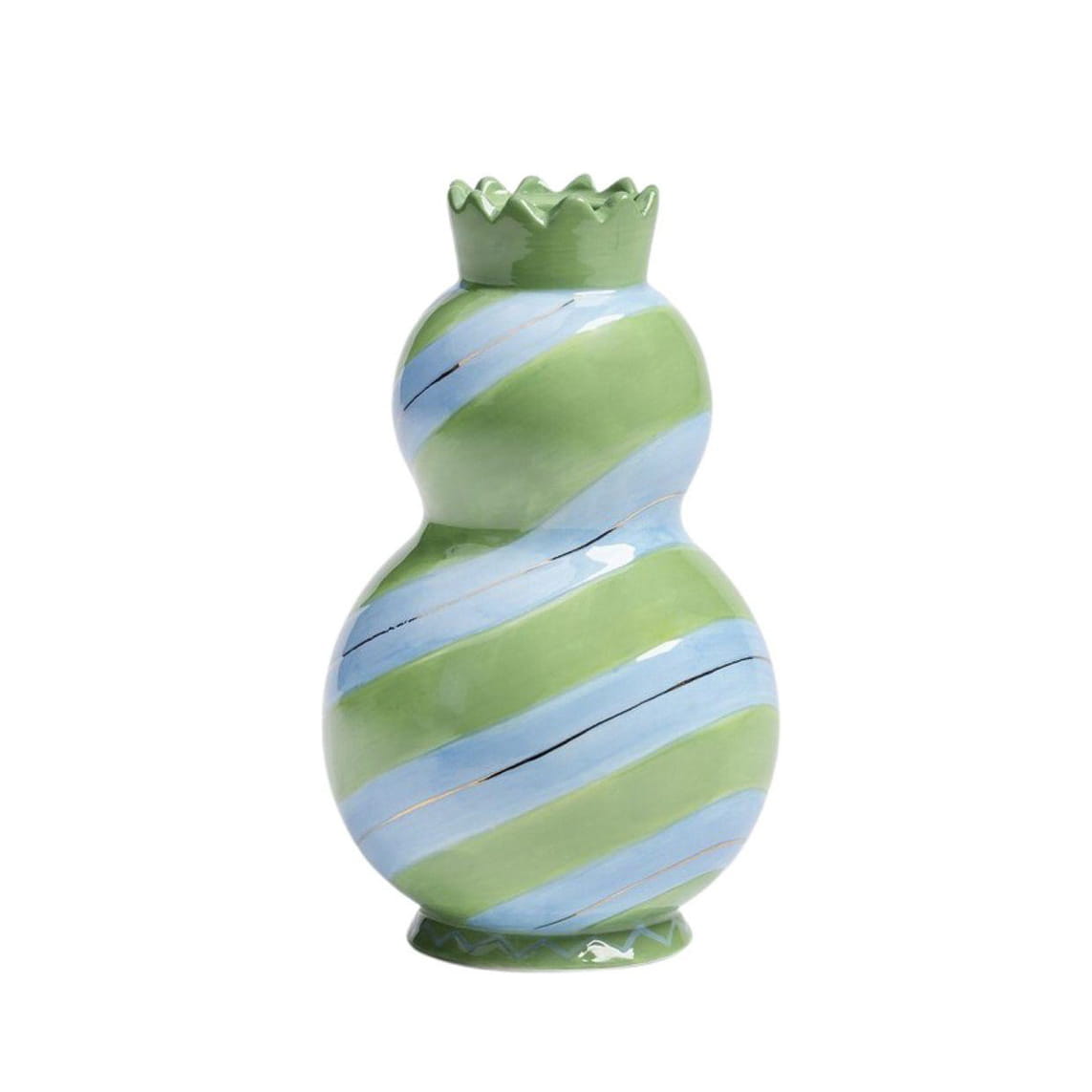 Kolacja wigilijna, bożonarodzeniowy obiad, karnawałowa domówka – wyjątkowe okazje potrzebują wyjątkowej oprawy. Zapewni ją świecznik &k amsterdam Jolly zielony. Wykonany z porcelany, ozdobiony ukośnymi pasami, prezentuje się imponująco. Górna część świecznika przybrała kształt korony, nawiązując w ten sposób do postaci trzech króli, którzy są nieodłącznym elementem bożonarodzeniowej szopki.