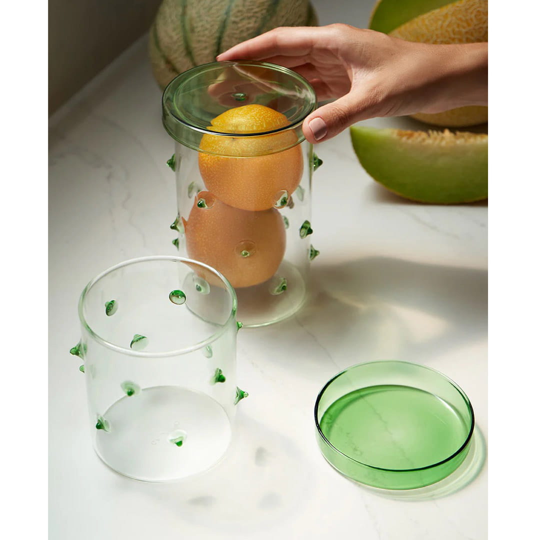 Szklany pojemnik z zieloną pokrywką Octaevo Agave 15 cm z borokrzemowego szkła