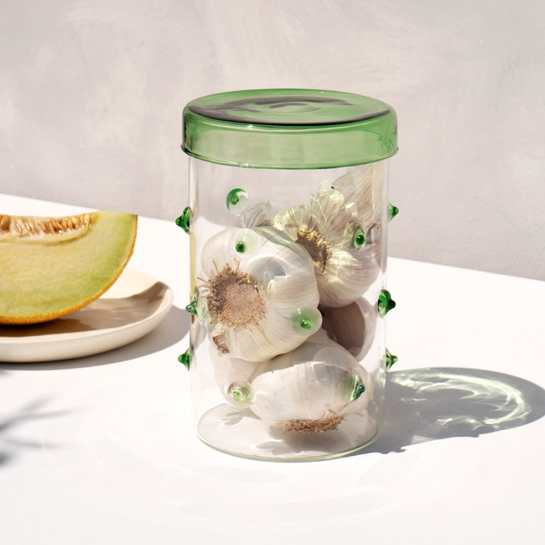 Wyjmując pokrywkę, pojemnik może pełnić także funkcję lekkiego i eleganckiego wazonu. Szkło borokrzemowe, z którego jest wykonany, wyróżnia się odpornością na temperatury i uszkodzenia. Idealny zarówno do codziennego użytku, jak i jako wyjątkowy detal wystroju.