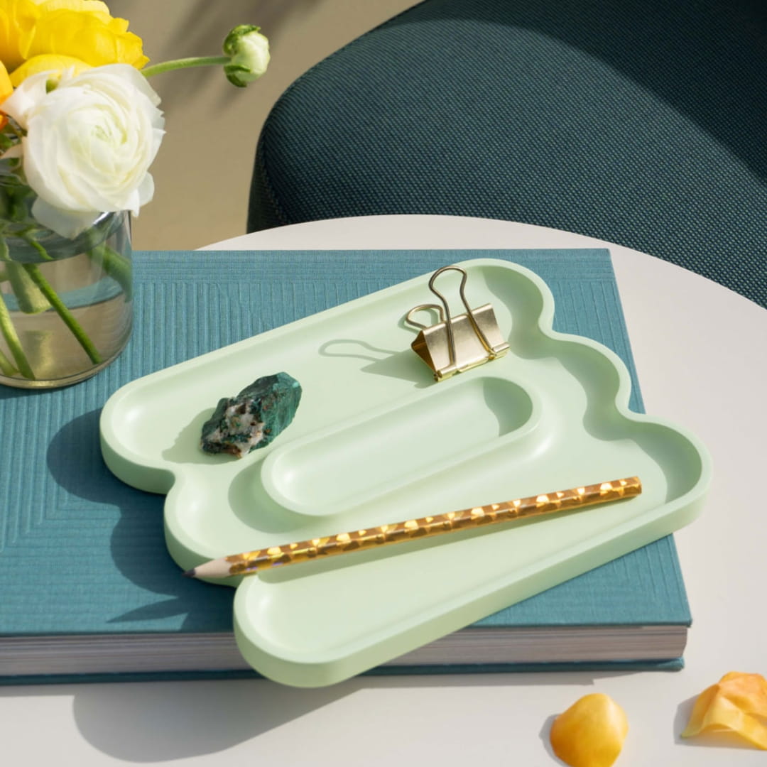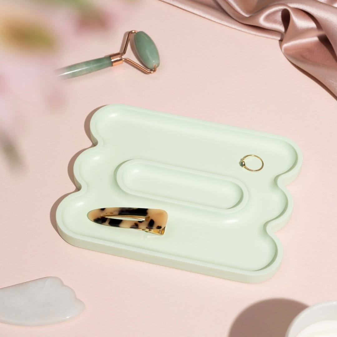 Tacka/organizer na akcesoria Octaevo Templo Wave jasny miętowy to element zaprojektowany z dbałością o każdy, nawet najmniejszy detal. Posiada falowaną formę i subtelny, miętowy kolor. Prezentuje się interesująco, choć minimalistycznie.