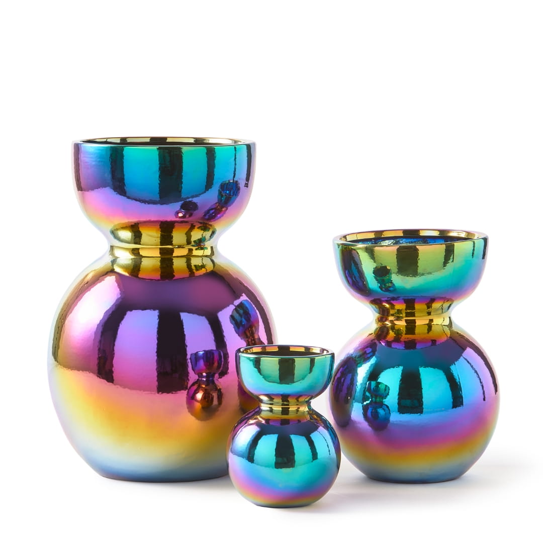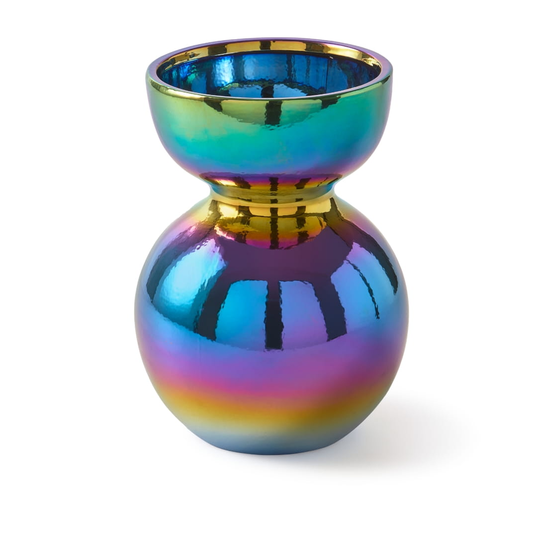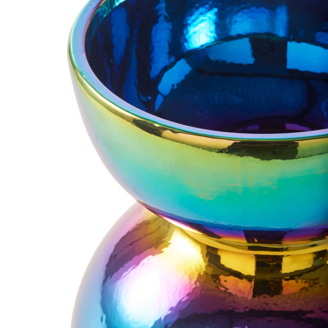 Wazon Polspotten Boolb M multikolor łączy organiczny kształt, dawną sztukę rzemieślniczą z kolorowym, wręcz dyskotekowym wykończeniem. Efektem tej estetycznej fuzji jest jedyny w swoim wazon, wobec którego nie sposób przejść obojętnie.