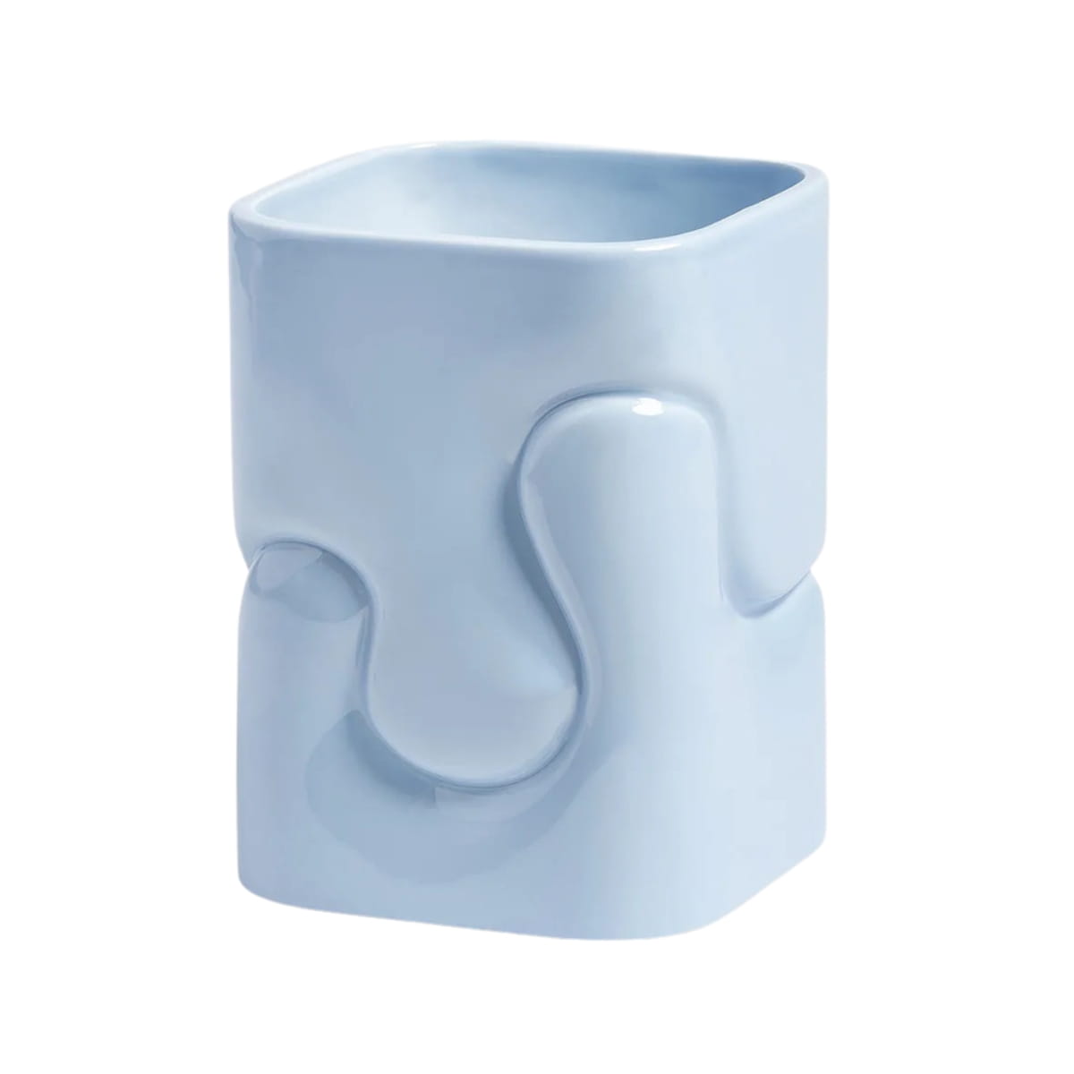 Wazon &k amsterdam Puffy jasny niebieski zwraca na siebie uwagę subtelnym, pastelowym kolorem, miękkimi liniami oraz interesującą, ale nieprzekombinowaną formą. Wspaniale wyeksponuje bukiety z drobnych kwiatków, takich jak gipsówka czy konwalie lub dekoracyjne gałązki. Ustawiony na półce, komodzie, parapecie czy stole w jadalni wniesie do wnętrza mnóstwo pozytywnej energii.