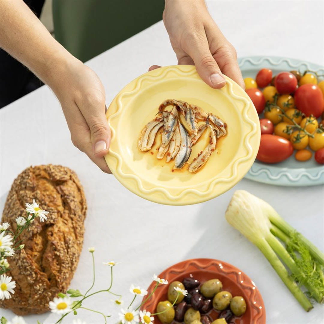 Kolekcja Mochi inspirowana jest estetyką lat 50. XX wieku, łącząc klasyczne detale z minimalistycznym podejściem do kolorystyki. Żywy odcień żółtego dodaje wnętrzu ciepła i pozytywnej energii, sprawiając, że talerze idealnie komponują się zarówno z tradycyjną, jak i nowoczesną zastawą.
