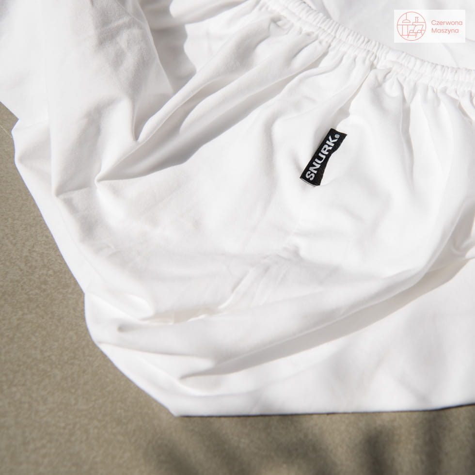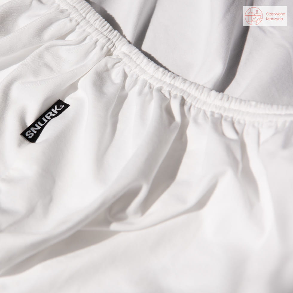 Prześcieradło Snurk Uni White 90/100 x 200/220 cm to dobrej jakości produkt marki Snurk. Markę tę charakteryzuje duży nacisk na wytrzymałość i trwałość wypuszczanych produktów. Do produkcji w 95% wykorzystuje się bawełnę organiczną oraz w 5% elastan.