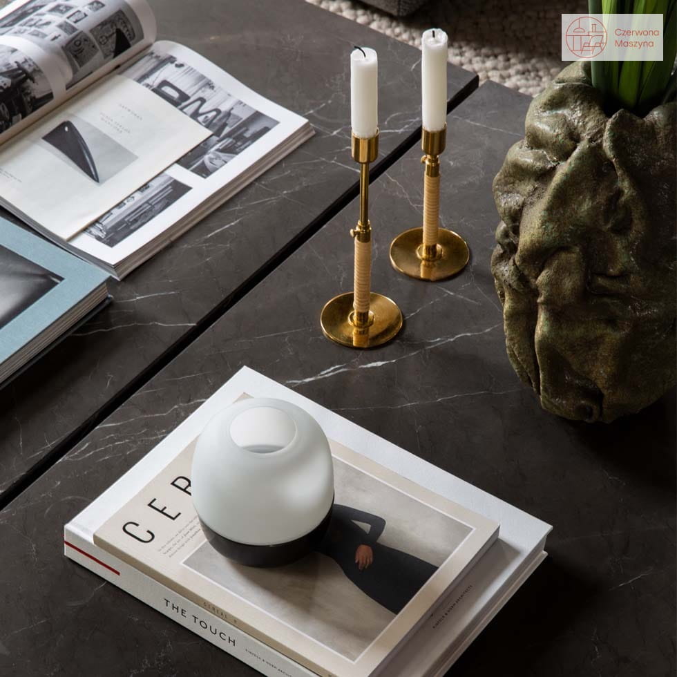 Świecznik Audo Copenhagen Duca rattan/polerowany mosiądz świetnie dopełni swoją geometryczną formą aranżację nowoczesnej przestrzeni w stylu boho lub industrialnym.