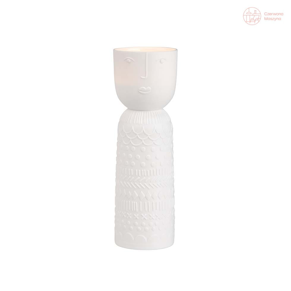 Jego dolną część tłoczono w geometryczne wzory, a górną w uroczą twarz kobiety, w której wnętrzu umieszcza się świeczkę.