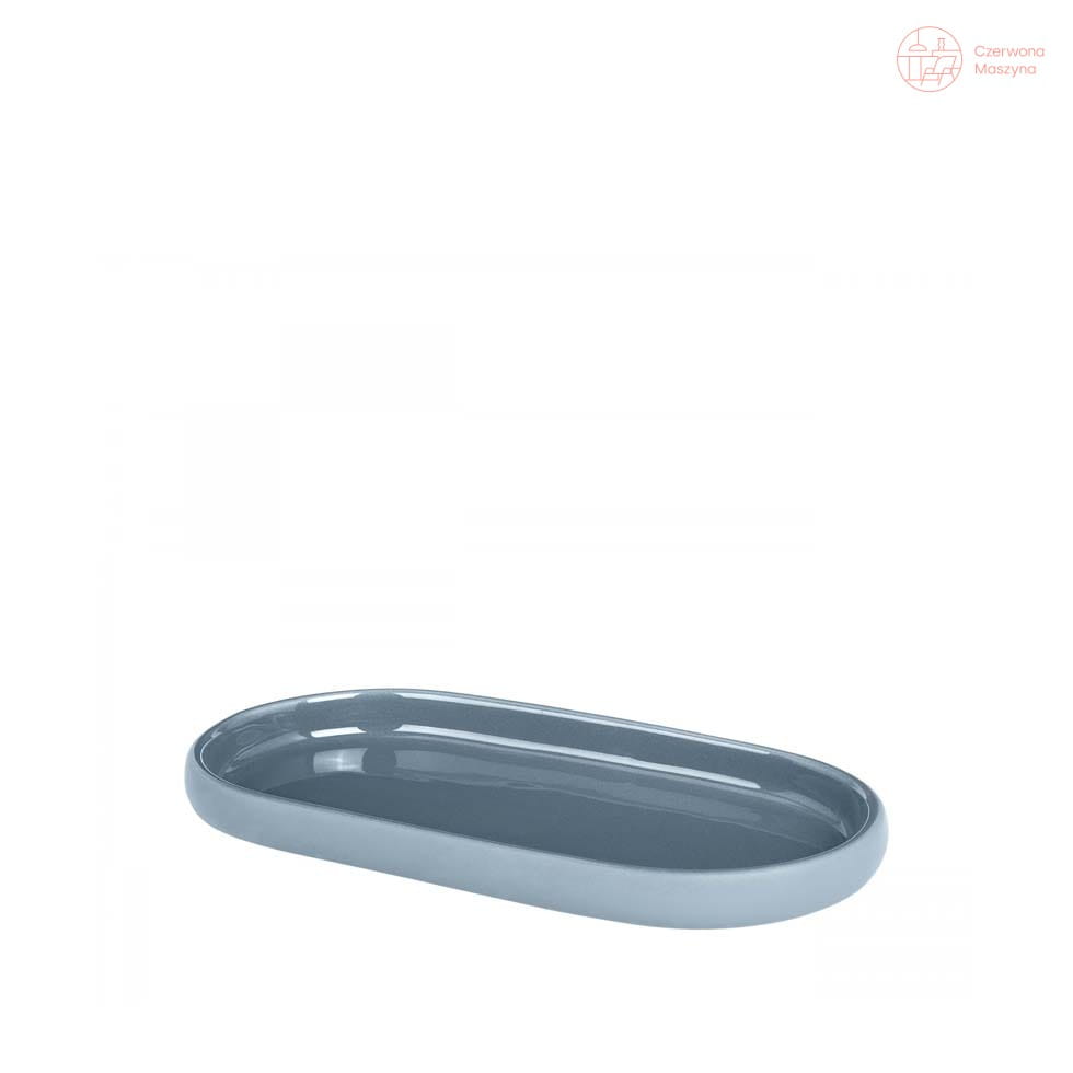 Błękitna powierzchnia tacki jest matowa, natomiast wnętrze - błyszczące. Zmieścimy na niej dozownik do mydła i kubek na szczoteczki do zębów z serii Sono. Można także położyć tam patyczki kosmetyczne czy waciki, albo wykorzystać ją jako estetyczną mydelniczkę.