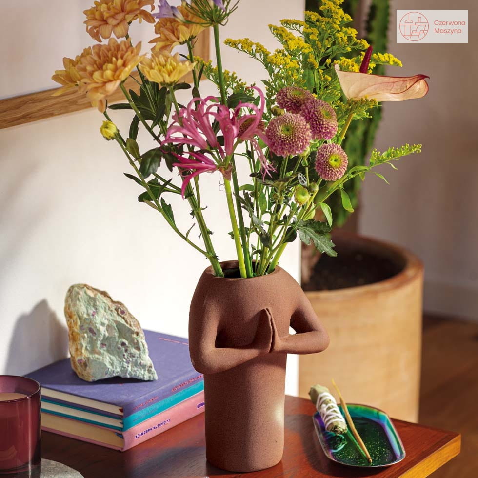 Ten wykonany z ceramiki wazon o wysokości 15,5 cm zainspirowany został duchem jogi. Dzięki niemu wprowadzisz do wnętrza pozytywną energię i poczucie równowagi. Brązowy kolor produktu będzie piękne kontrastował z kolorem kwiatów, tworząc ciekawe dla wzroku zestawienie.