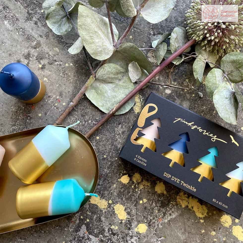 Zestaw świec Pink Stories Dip Dye Twinkle Cold Diamonds dzięki swojej żywej kolorystyce świetnie wzbogacą stroiki czy inne świąteczne ozdoby.